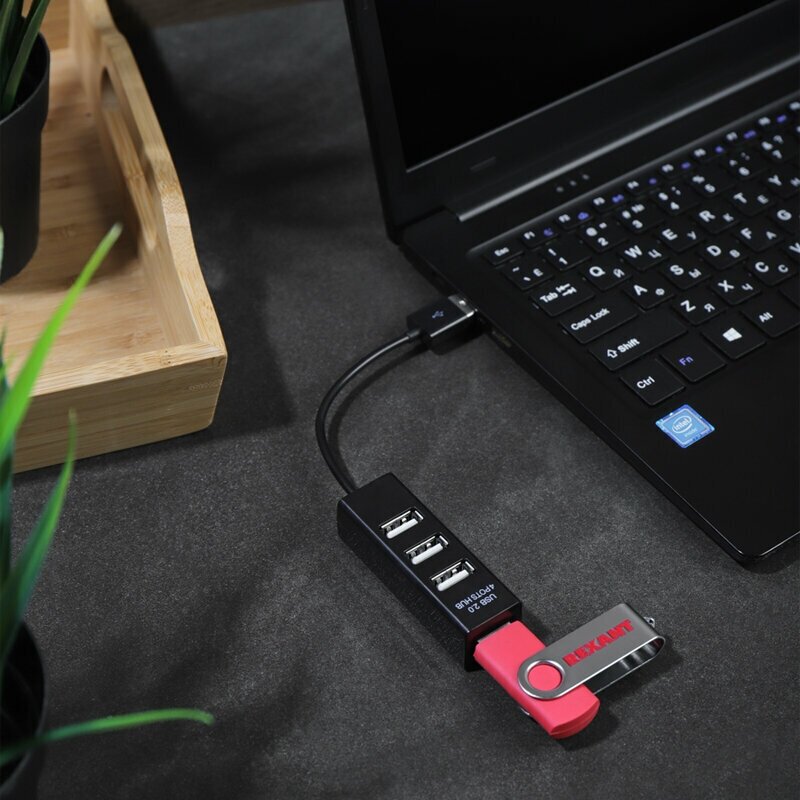 Разветвитель REXANT USB 2.0 на 4 порта черный информация:
