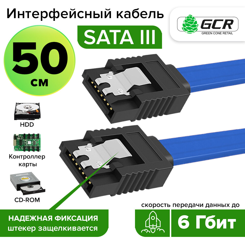 10 цен на Кабель интерфейсный SATA III 0.5m GCR SATA III - SATA III до 6Gb/s, 26 AWG, 7pin / 7pin