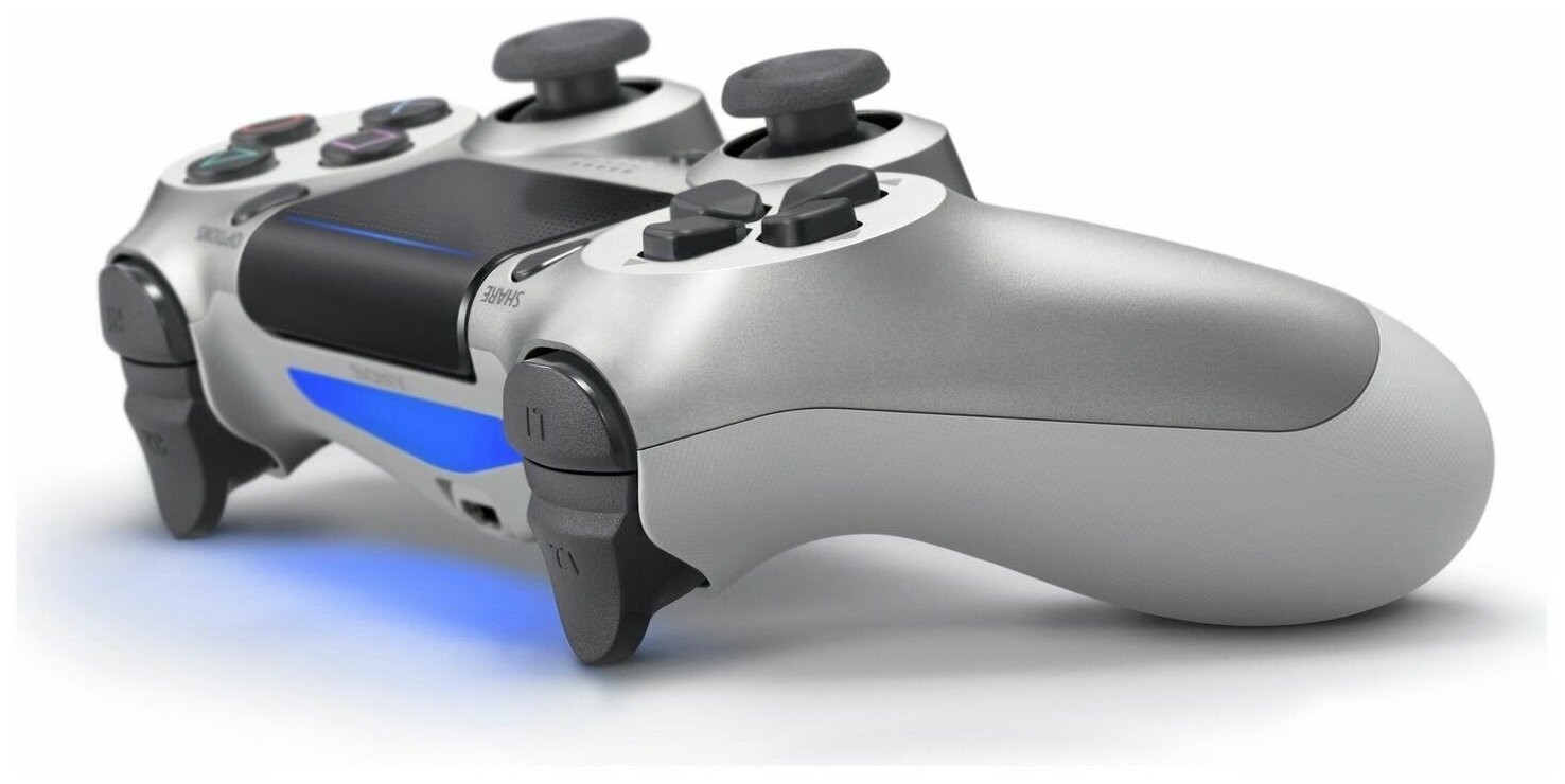 10 цен на Беспроводной Bluetooth геймпад для PlayStation 4 серебристый. Джойстик совместимый с PS4, PC и Mac, устройства Apple, устройства Android