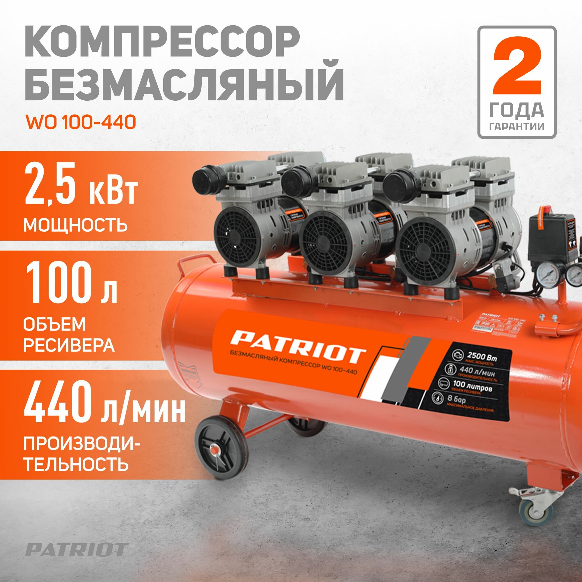 Компрессор поршневой безмасляный PATRIOT WO 100-440 информация: