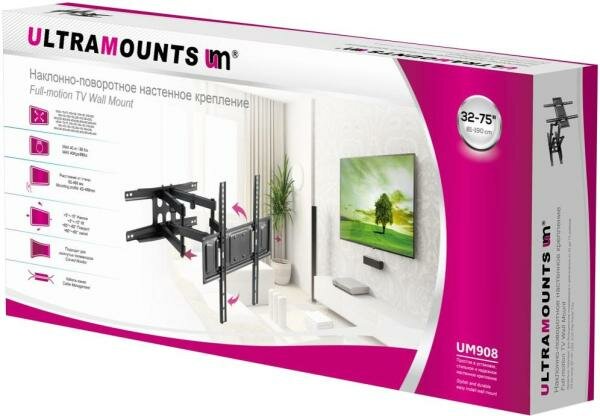 10 цен на Кронштейн для телевизора Ultramounts UM 908 черный 32-75 макс.40кг настенный поворотно-выдвижной и наклонный