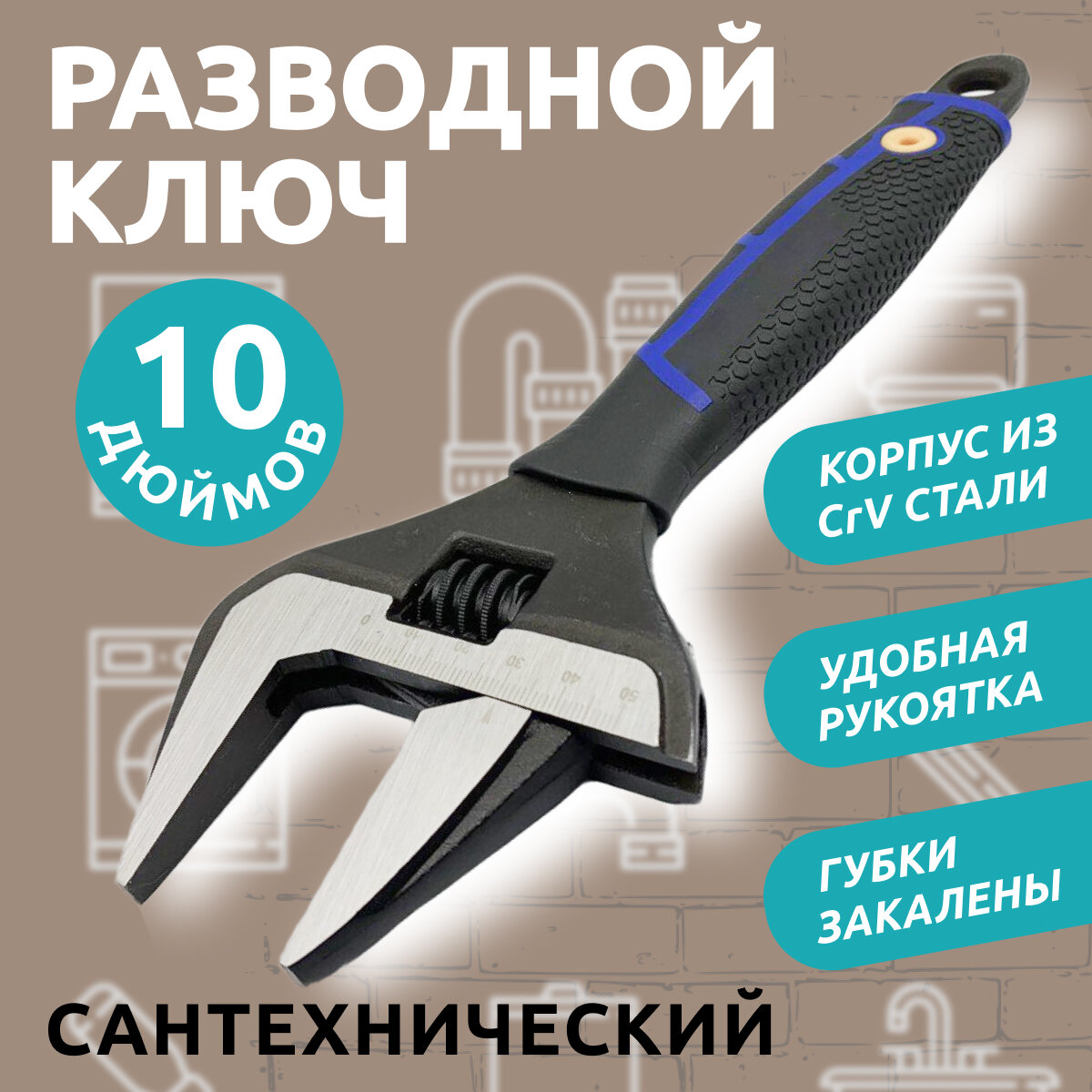Отзывы на Ключ разводной с тонкими губками/Сантехнический ключ 10" 50 мм