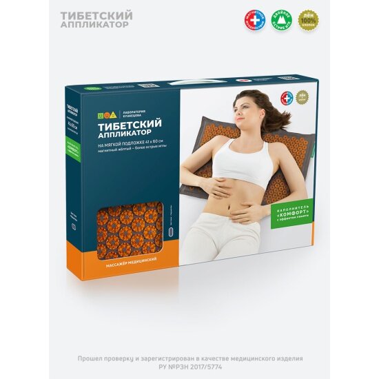 Отзывы на Массажный коврик лаборатория кузнецова Тибетский аппликатор (аппликатор Кузнецова) 41*60 см, комфорт, магнитные вставки, чёрный лён, желтый