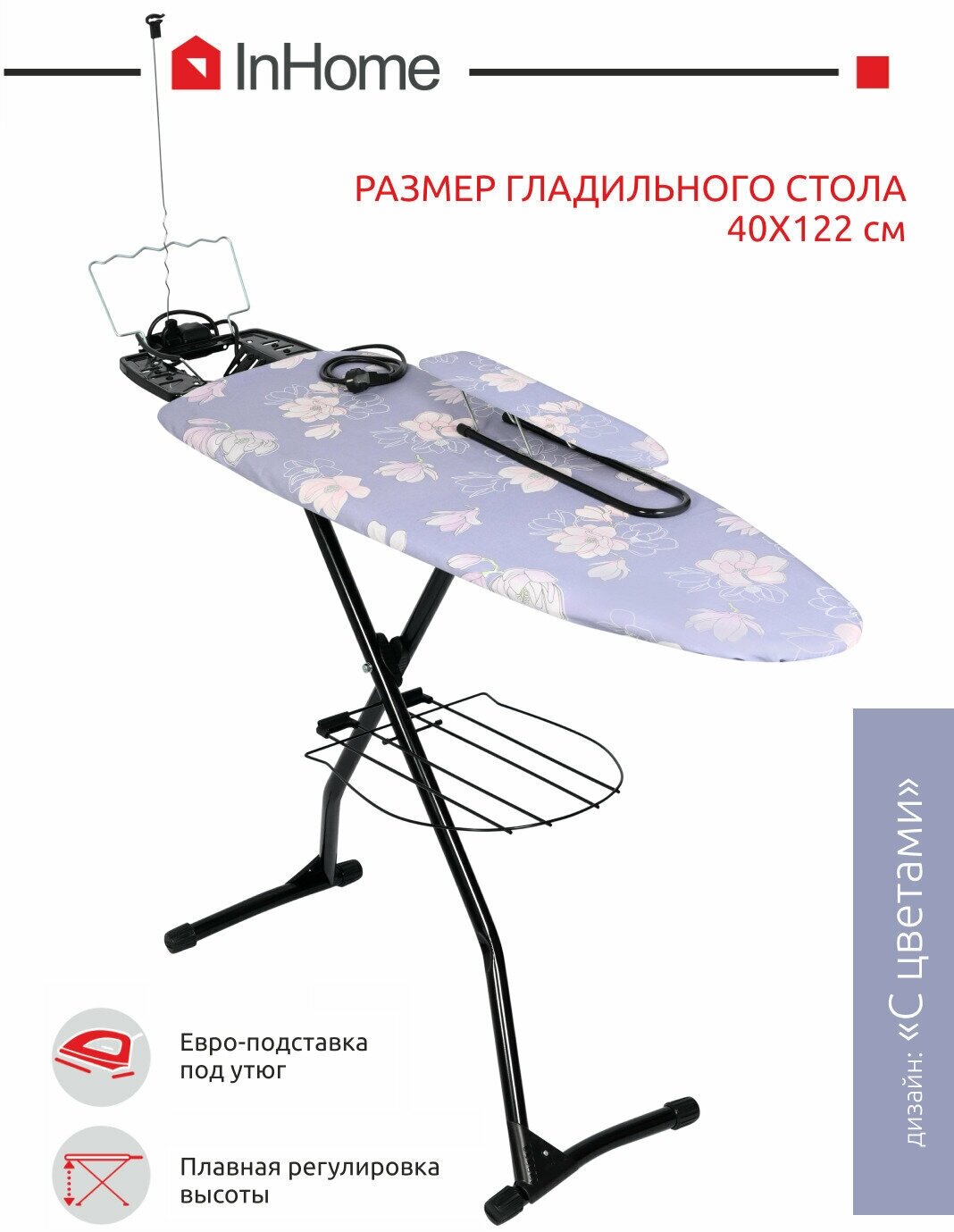 Гладильная доска Inhome моноблок (1220х400 мм) цветы на сером INHG/1 информация: