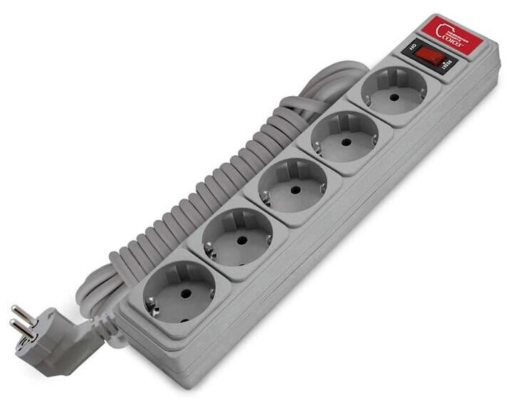 Отзывы на Удлинитель с сетевым фильтром 5х5м 10А ПВС 3х0.75 сер. Союз 1330, 1шт