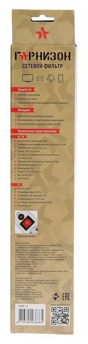 Отзывы на Гарнизон Сетевой фильтр "Гарнизон", 6 розеток, 5 м, 10 А, 2200 Вт, белый