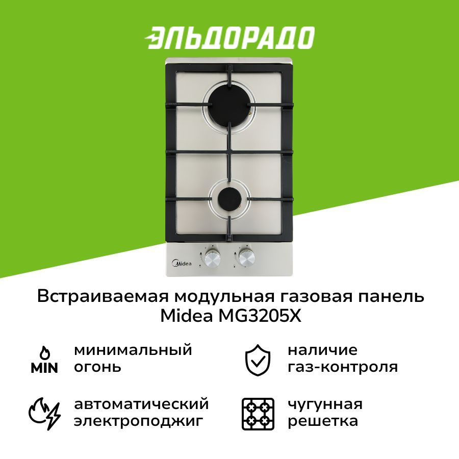 Встраиваемая модульная газовая панель независимая Midea MG3205X информация: