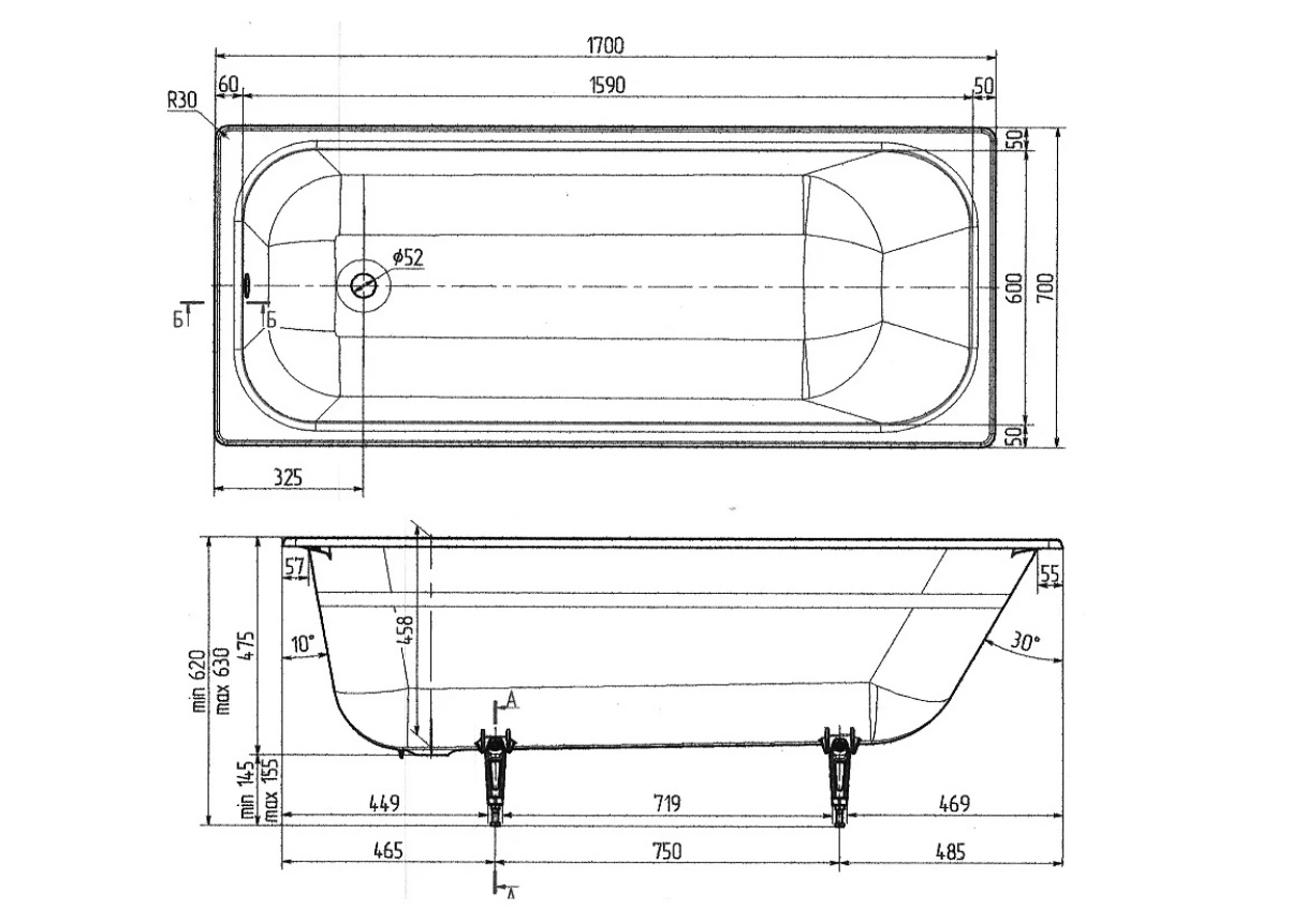 Wotte Start 1700х700х458 ванна чугунная (БП-э00д1139) информация: