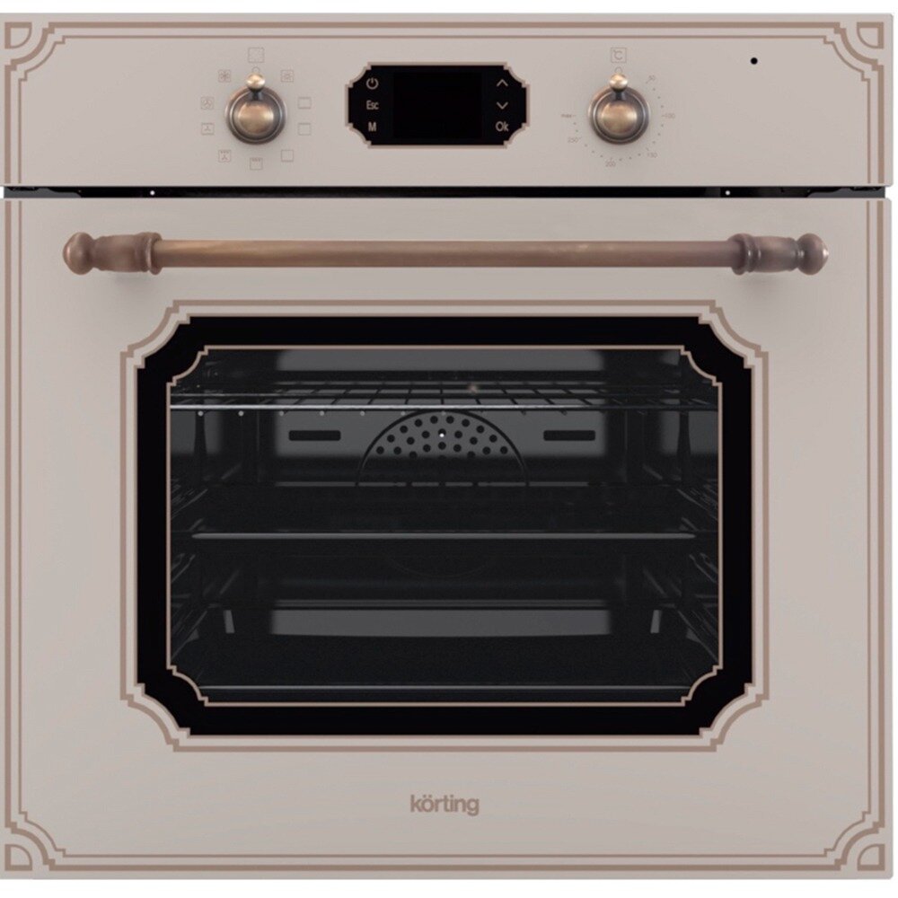 Встраиваемая электрическая духовка Korting Электрический духовой шкаф в ретро стиле,TFT дисплей,Термощуп,Объём:64л.,Очистка:каталитическая;Габариты:595х595х580 мм.