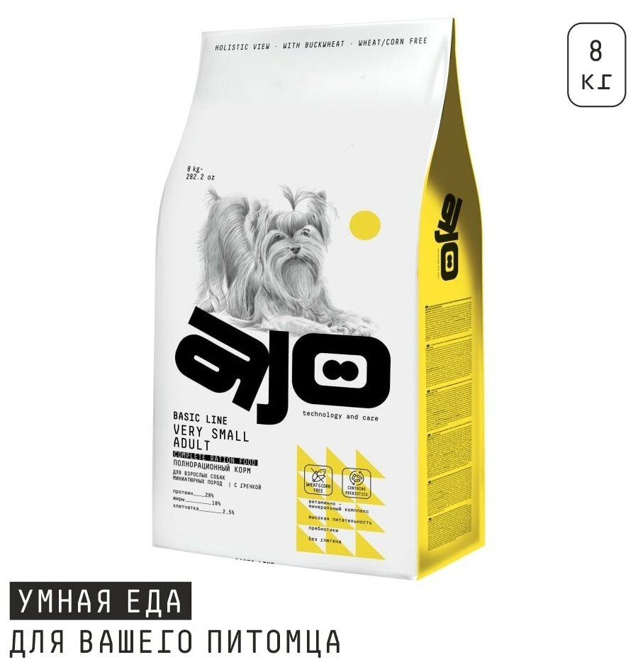 10 цен на AJO Very Small Adult сузой для собак миниатюрных пород с гречкой 8кг