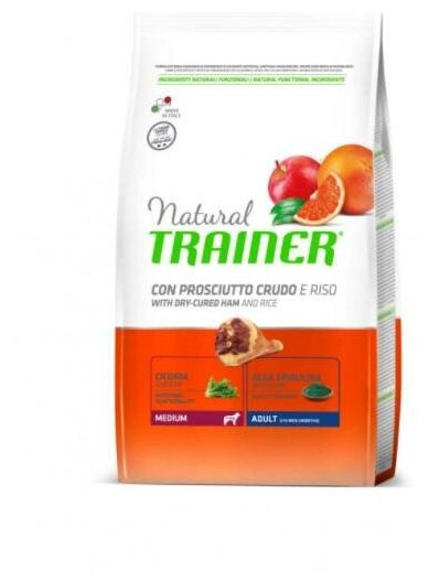 Сухой корм для собак средних пород Trainer Natural Medium Adult, с сыровяленой ветчиной и рисом 3 кг информация: