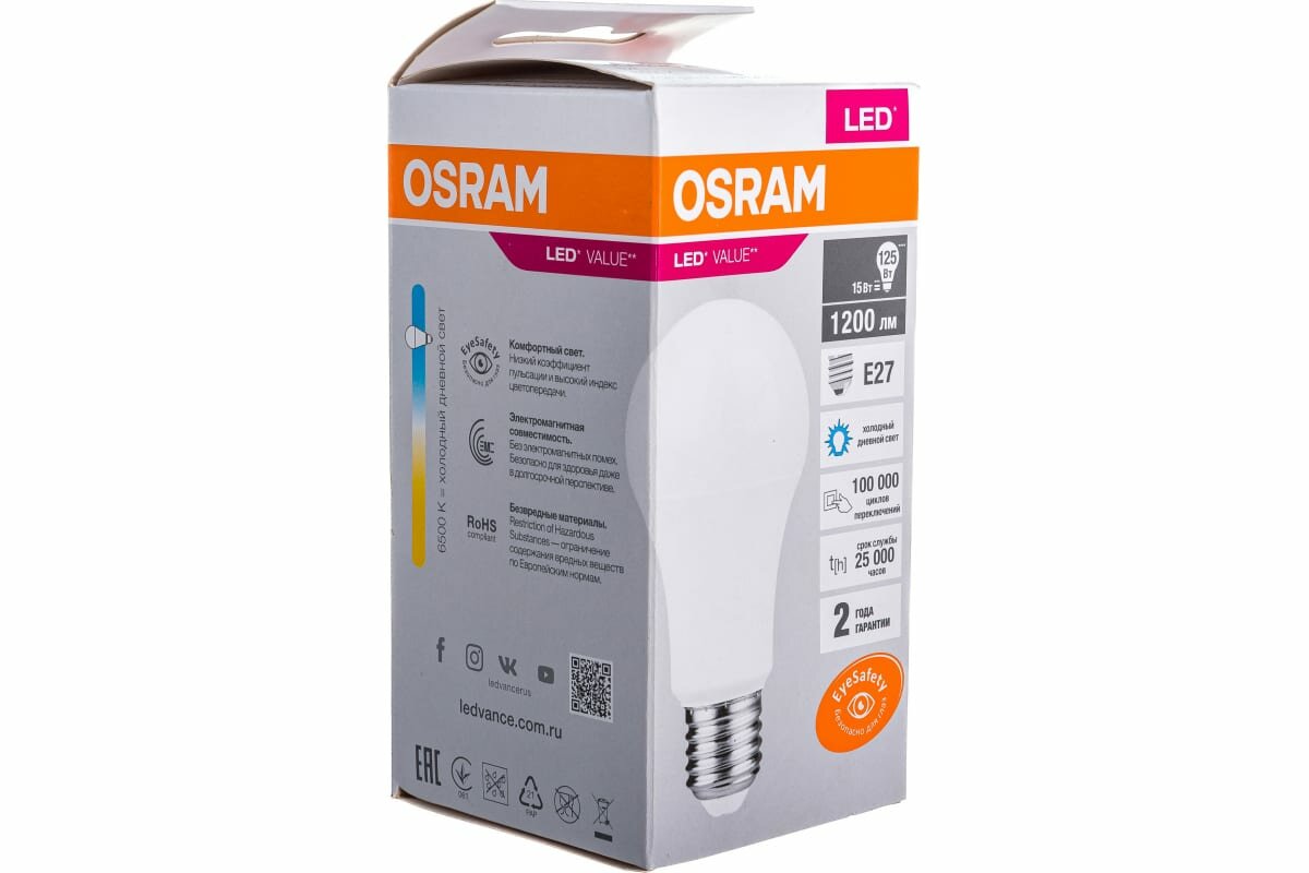 Отзывы на Лампа светодидная OSRAM LED VALUE CLASSIC A 125 15 W/6500 K E27