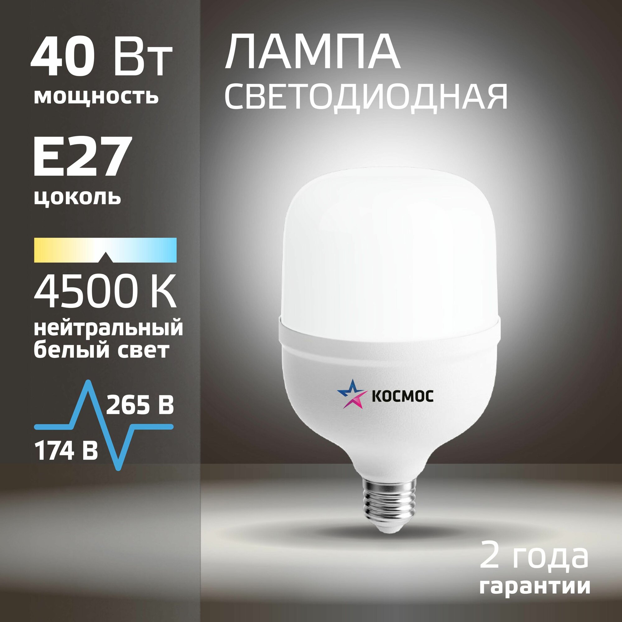 Светодиодная лампа космос HW LED Т100 40Вт E27, нейтральный белый свет, аналог лампы 300Вт. информация:
