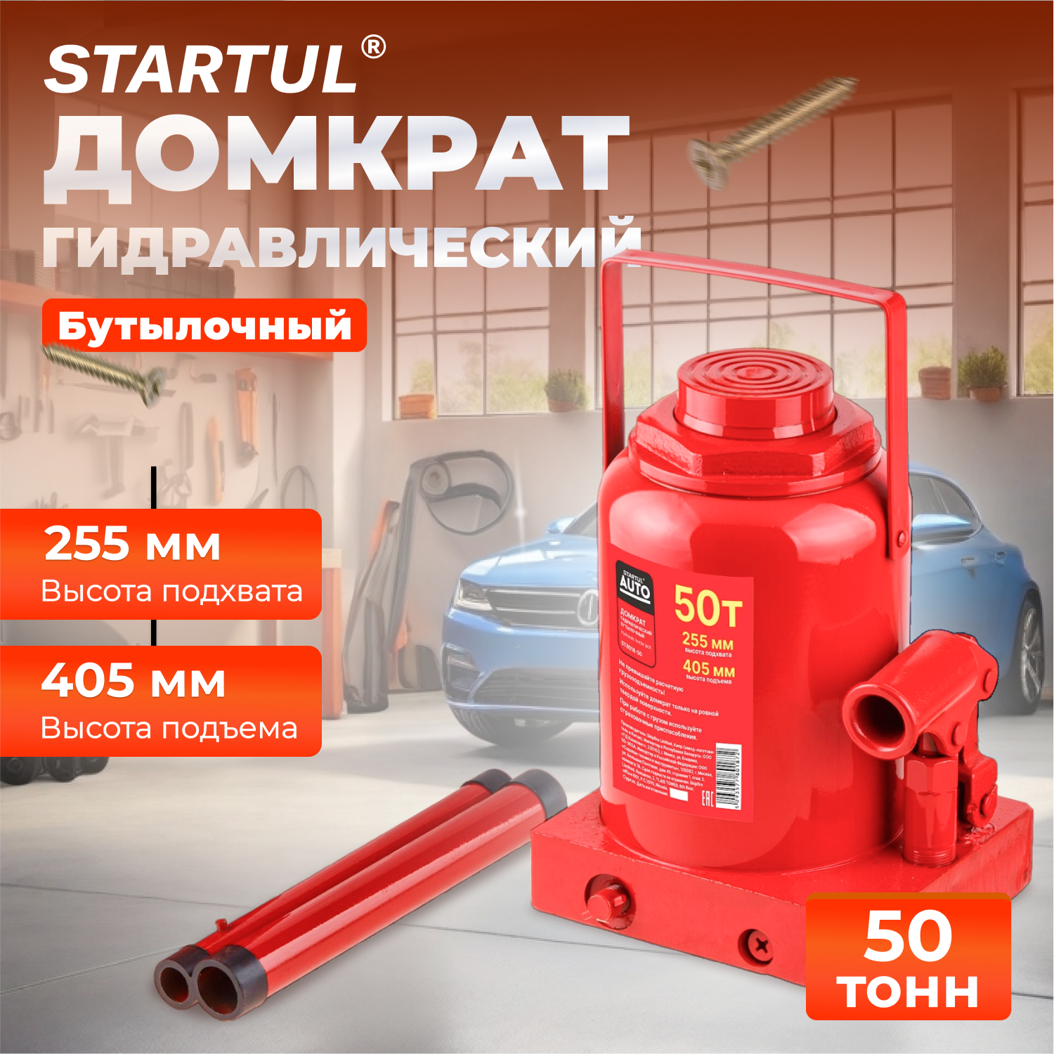 Домкрат гидравлический 50т бутылочный 255-405мм STARTUL AUTO (ST8018-50) (h min 255мм, h max 405мм)