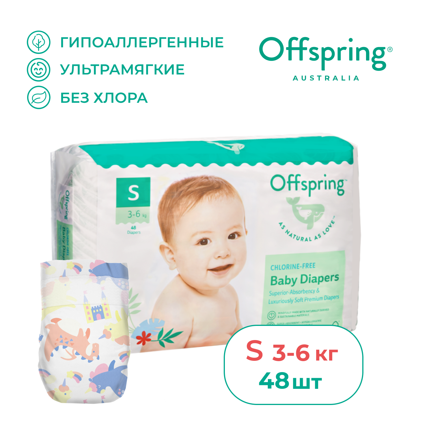 Offspring Подгузники Динозавры S (3-6 кг) 48 шт.