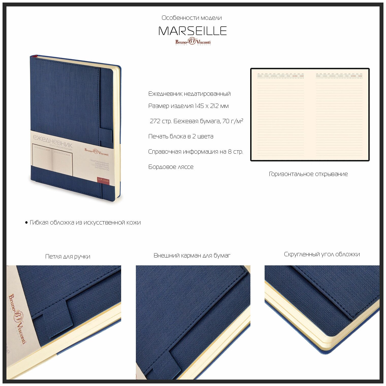 Ежедневник BrunoVisconti недатированный, А5 (147 х 212 мм), "MARSEILLE" синий 272 стр., Арт. 3-215/01