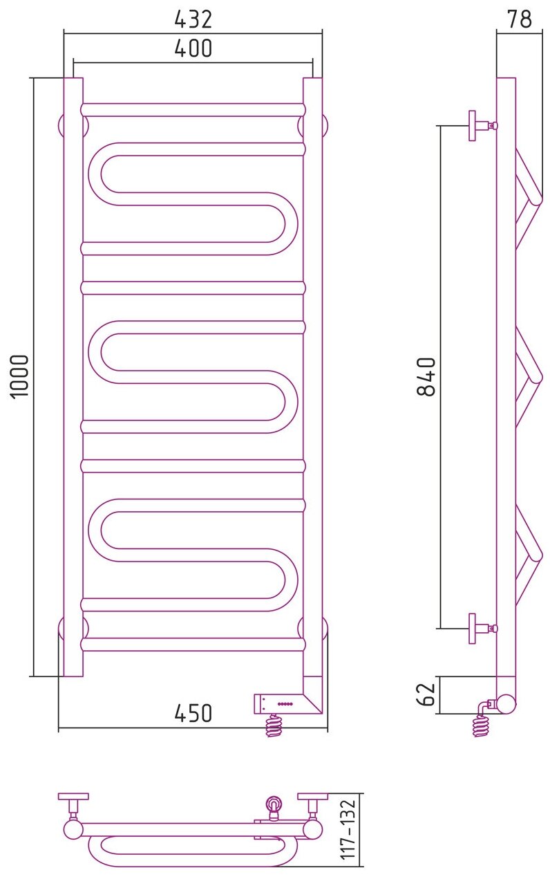Полотенцесушитель электрический Сунержа Элегия 2.0 1000х400 МЭМ правый Матовый чёрный информация: