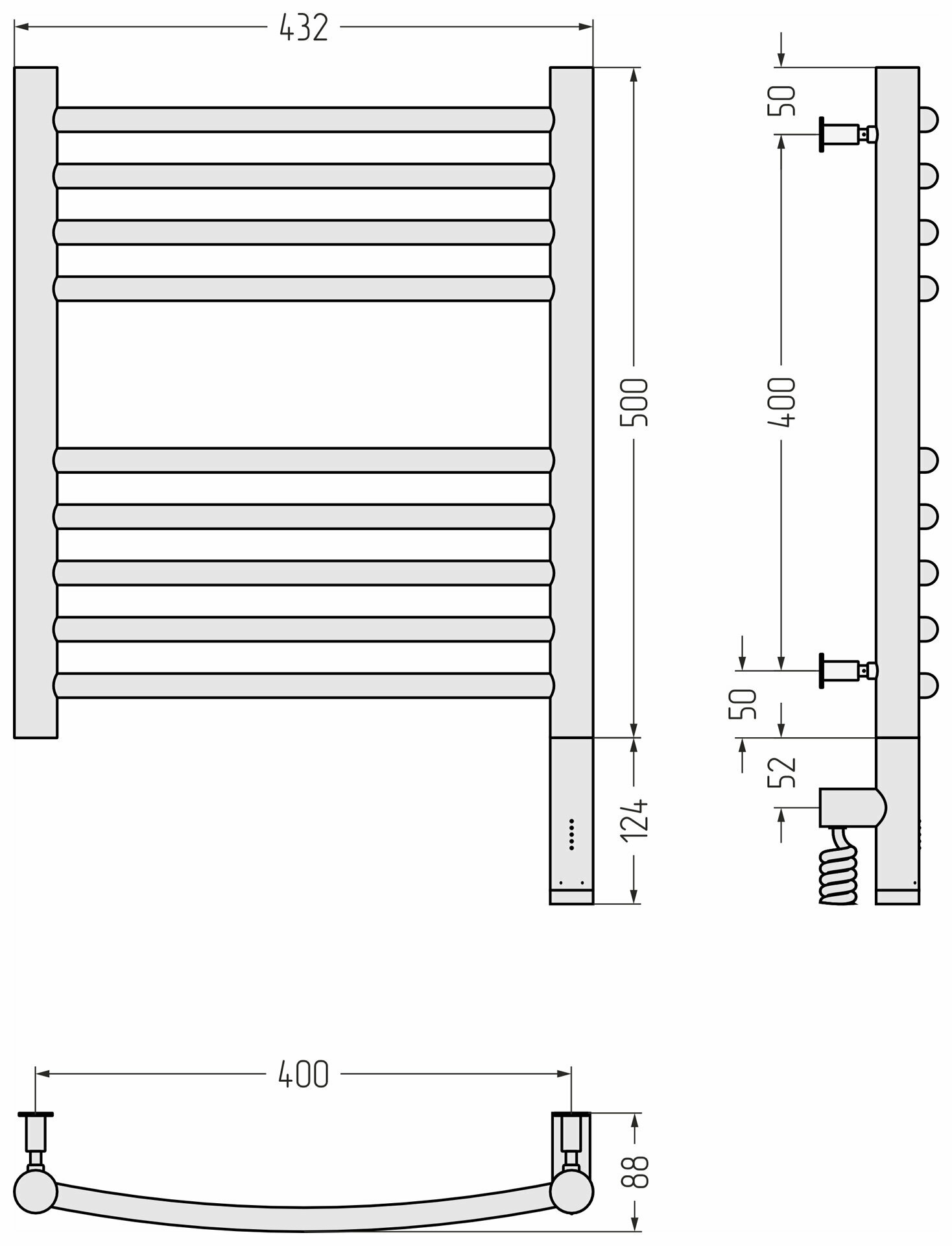 Сунержа Полотенцесушитель электрический Сунержа 00-5803-5040 Богема 3.0 РЭБ выгнутая, 500х400 мм/ МЭМ правый, без покрытия 35 443 ₽