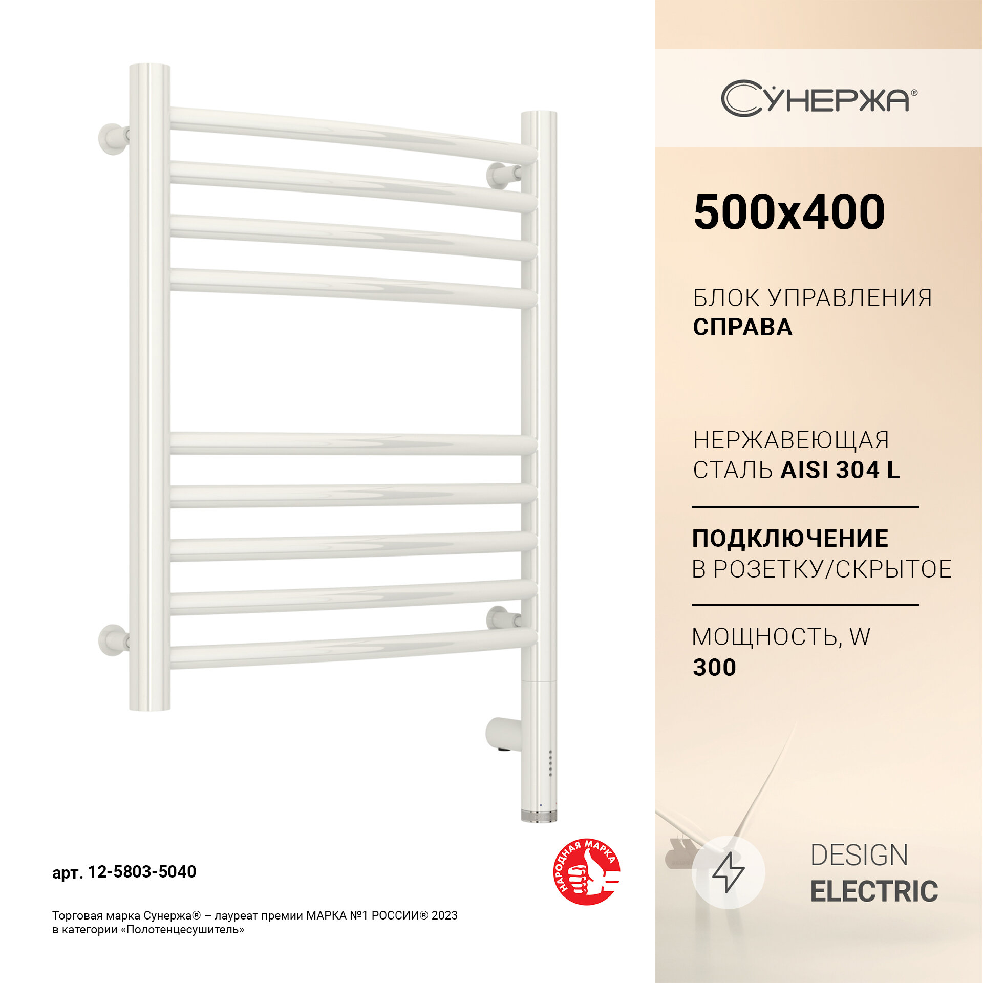 Полотенцесушитель электрический Сунержа Богема 3.0 выгнутая 500х400 МЭМ правый Белый информация: