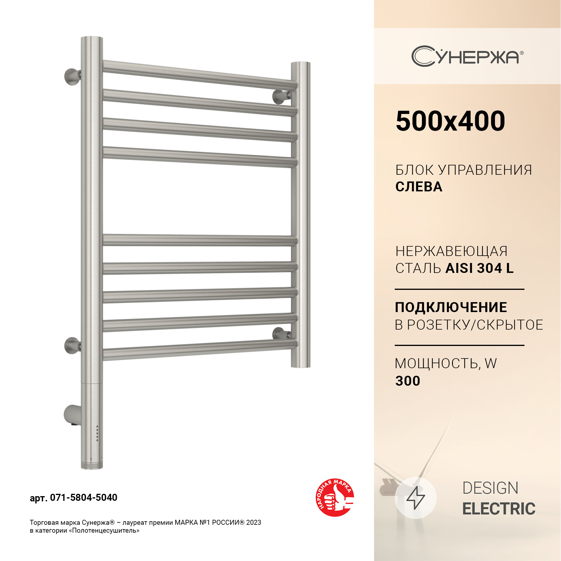 Полотенцесушитель электрический Сунержа Богема 3.0 прямая 500х400 МЭМ левый Сатин информация: