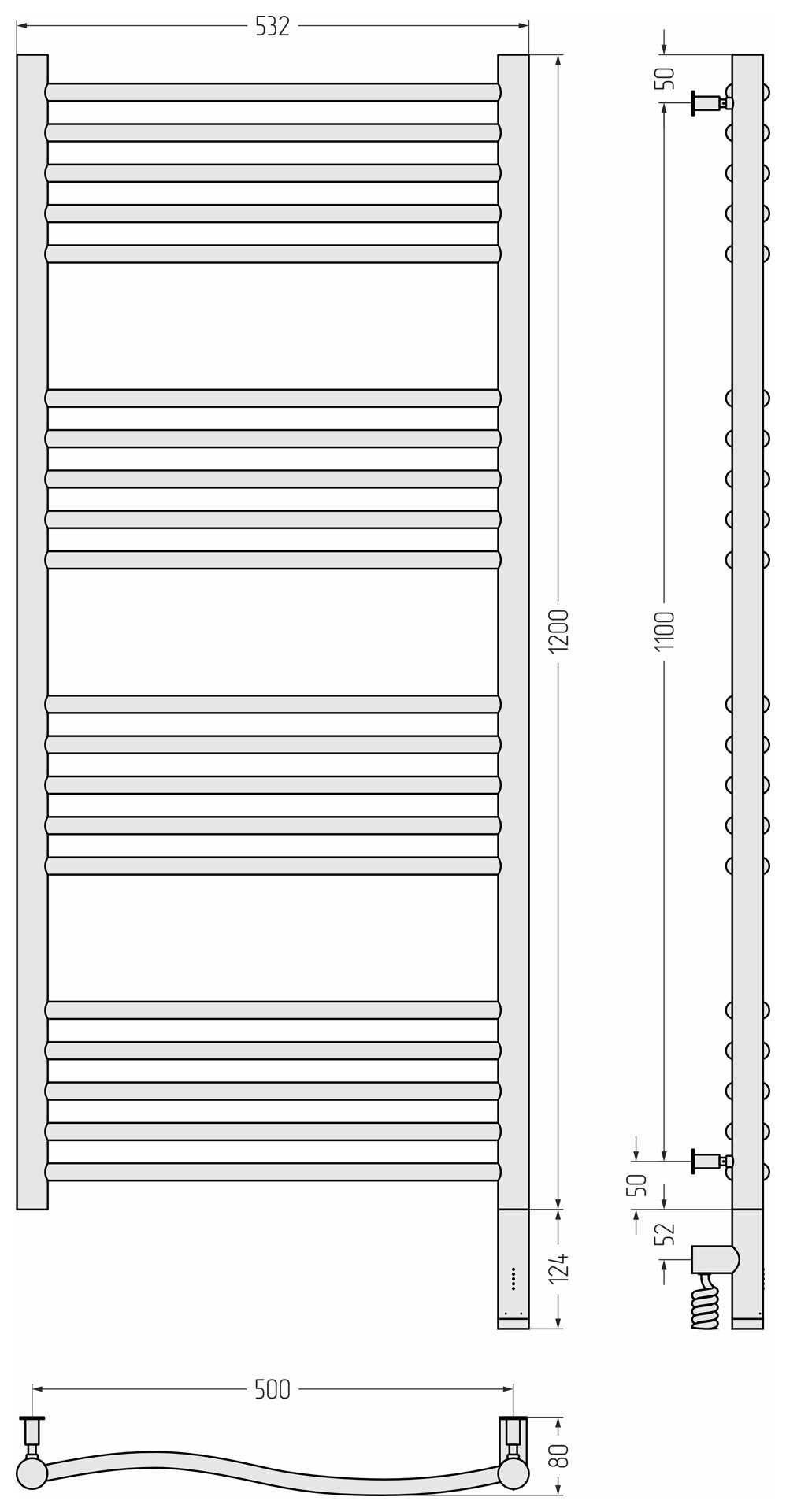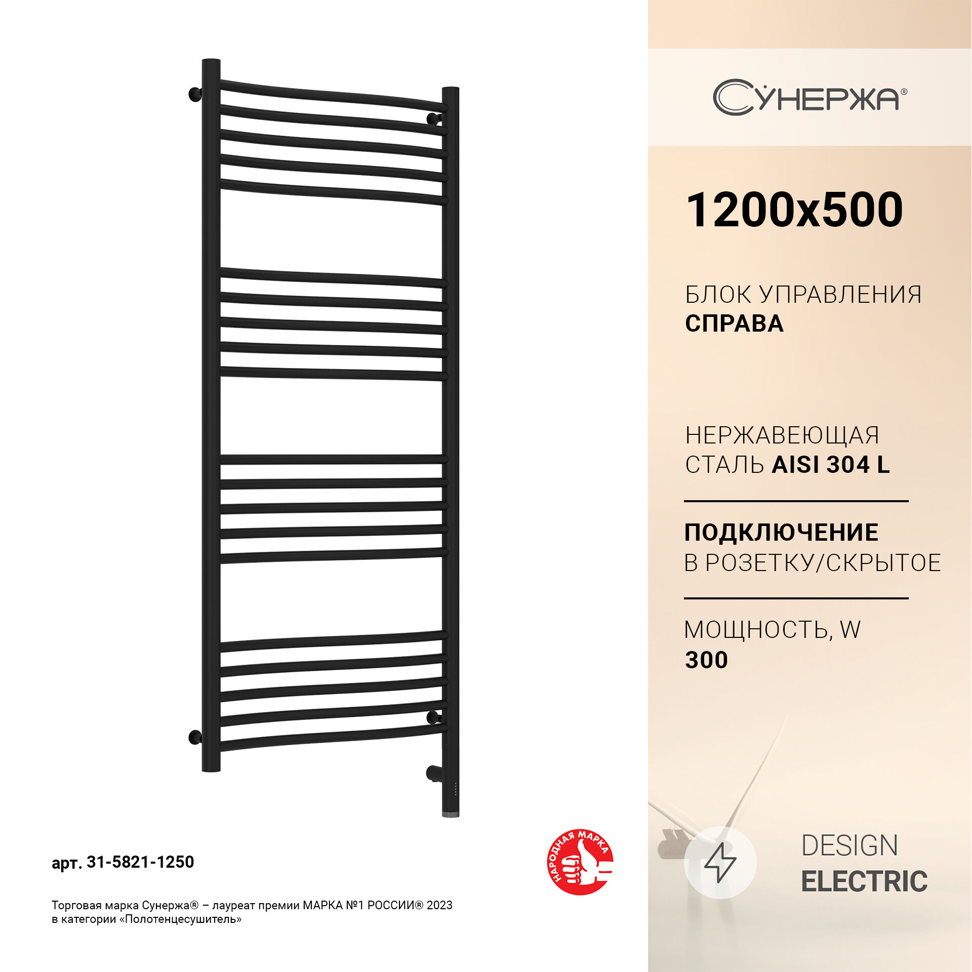 Полотенцесушитель электрический Сунержа Флюид 3.0 1200х500 МЭМ правый Матовый чёрный информация: