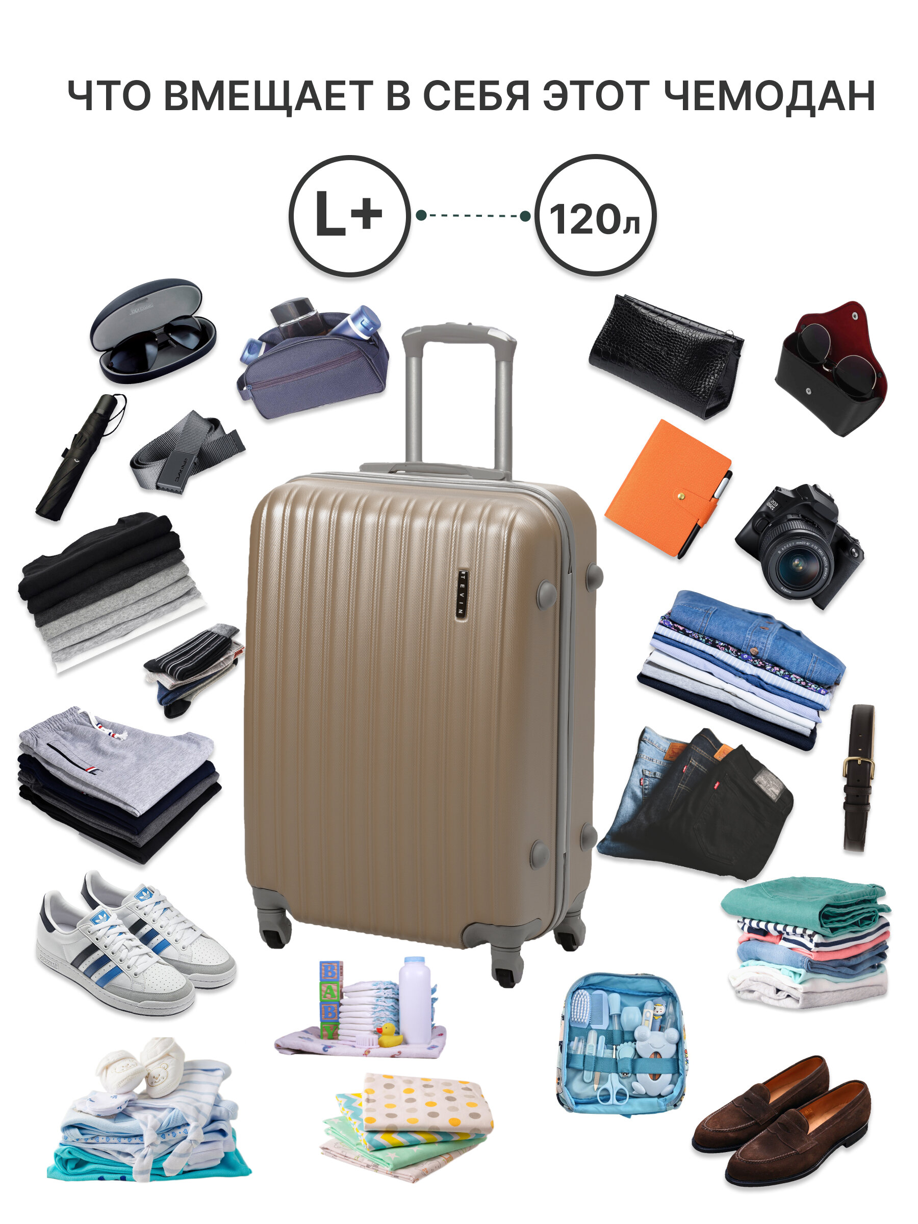 Самый большой чемодан из ABS пластика TEVIN L+ 4,2 кг 120л 76х52х32 на колесиках на колесах лучшие для путешествий недорого легкие пластиковый l 6 990 ₽