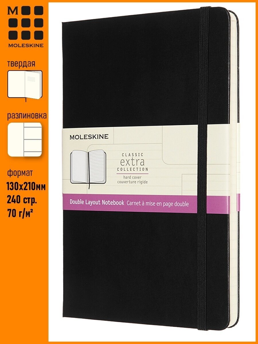 Блокнот Moleskine Classic Double Large, 130 х 210 мм, 240 страниц, линейка,/нелинованный, твердая обложка, черный