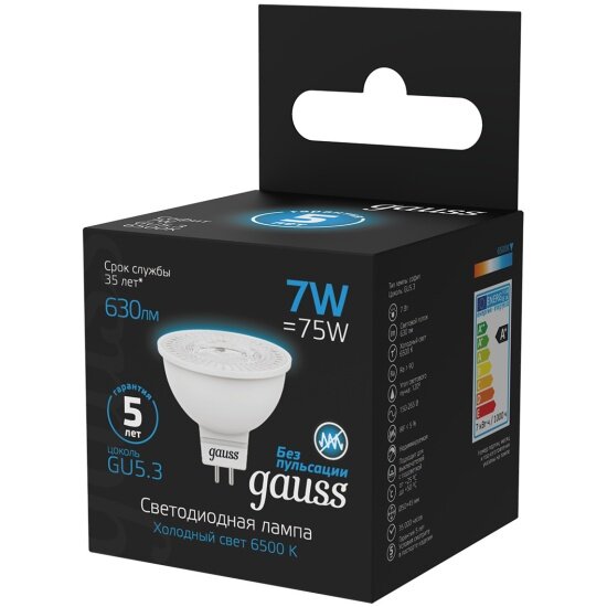 Отзывы на Светодиодная лампа Gauss MR16 7W 630lm 6500K GU5.3 LED 1/10/100