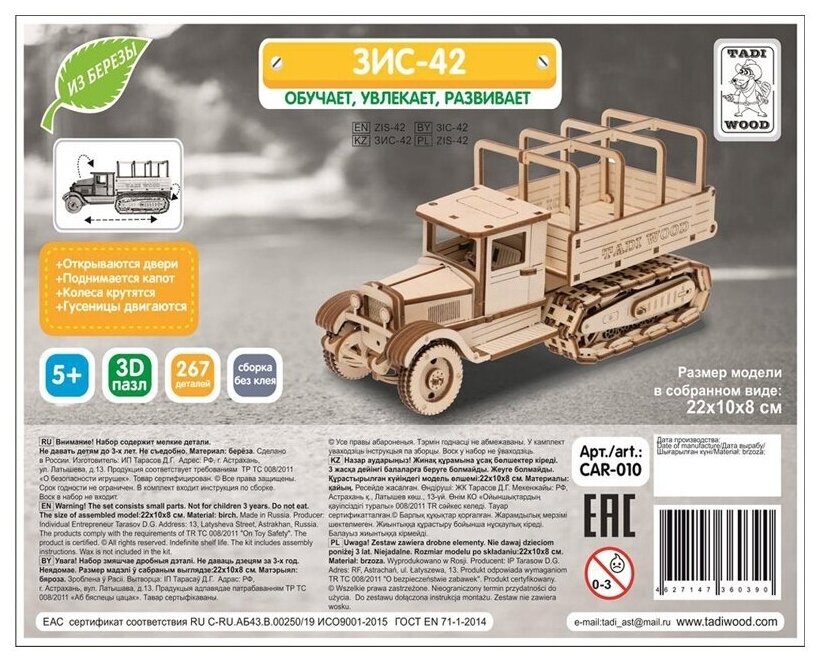 Конструктор деревянный Tadiwood "ЗИС-42" информация: