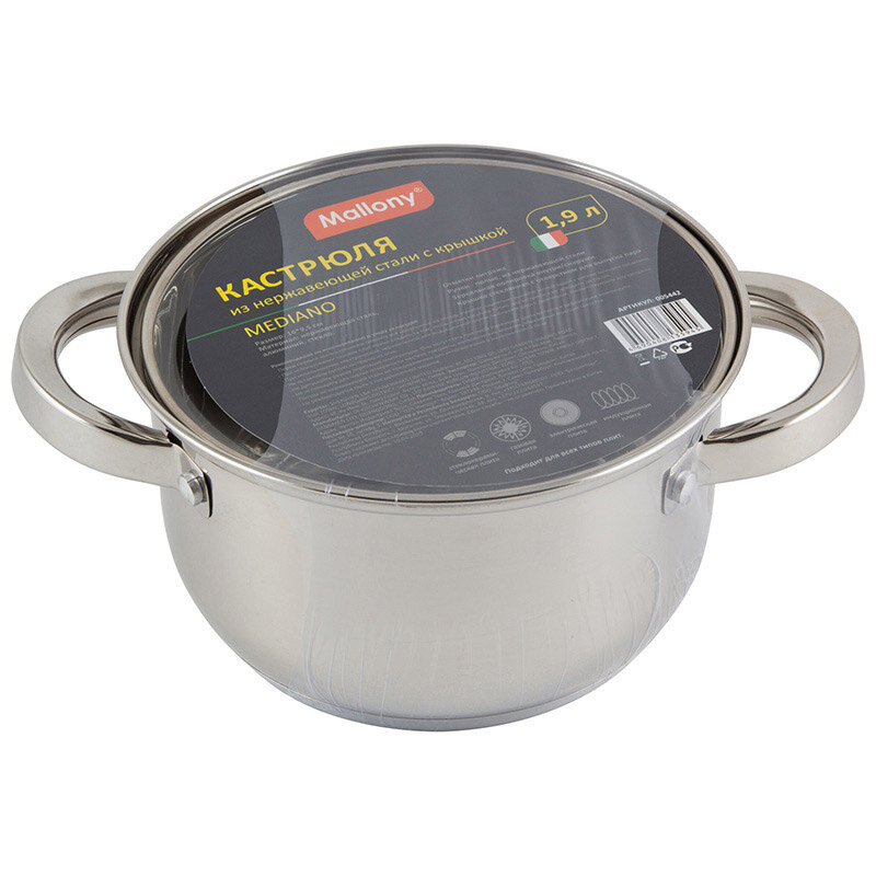 Кастрюля из нержавеющей стали с крышкой Mallony Mediano, 1.9 л, капсулированное дно, подходит для индукции 887 ₽