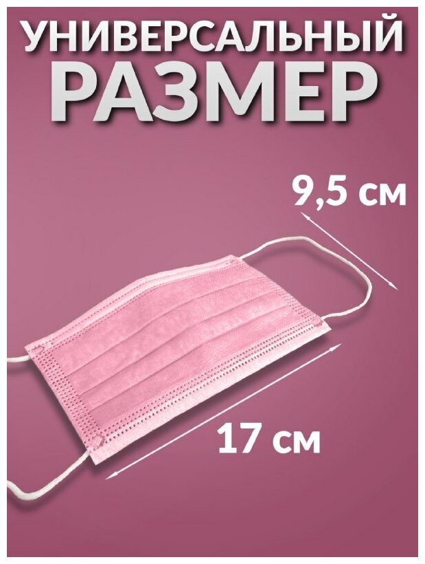 Одноразовые медицинские маски, 100 шт., розовые, (гигиенические маски трёхслойные из нетканного материала) информация: