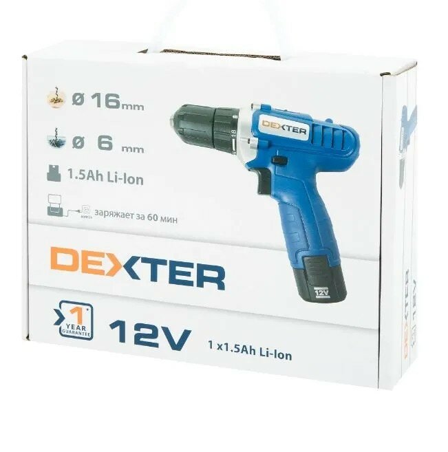 Дрель аккумуляторная Dexter ML-CD62-120S, 12 В Li-ion 1.5 Ач информация: