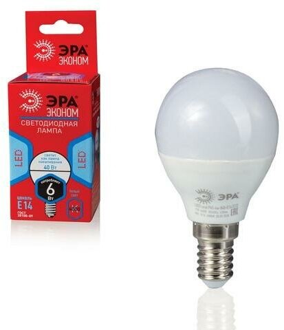 ЭРА ECO LED P45-6W-840-E14 ЭРА (диод, шар, 6Вт, нейтр, E14) (10/100/3000)