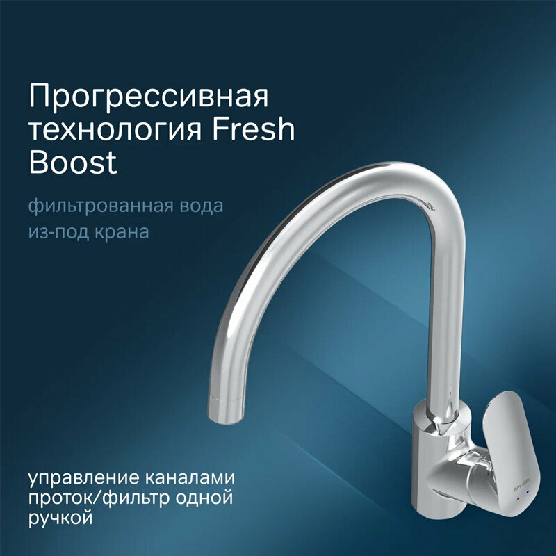 Смеситель для кухни AM.PM Chick с фильтром для питьевой воды, с гибким изливом, технология Fresh Boost 2 в 1 управление одной ручкой