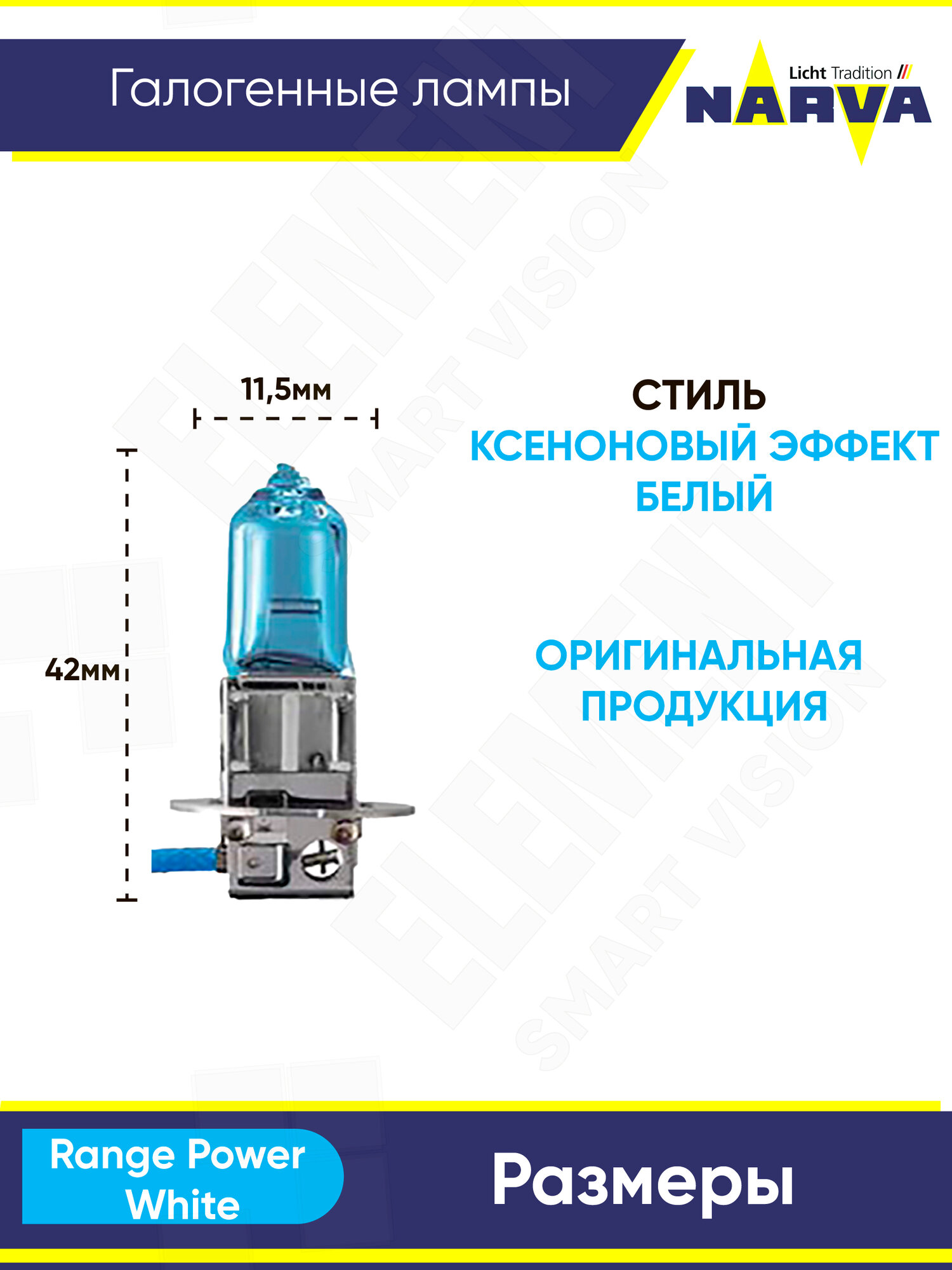 Лампа автомобильная галогенная Narva Range Power White N-48602RPW2 H3 55W PK22s 2 шт. информация: