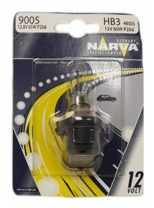 NARVA 480054000 Лампа HB3 9005 12V 65W P20D NVA (блистер 1 шт.) информация: