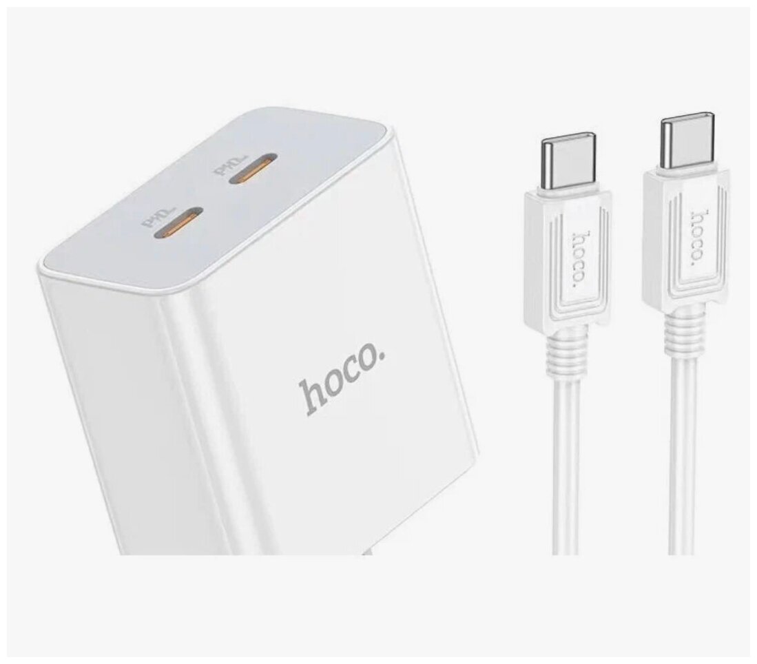 СЗУ HOCO C108A Leader 2xUSB-C, 3А, PD35W, QC3.0, GaN + USB-C кабель Type-C, 1 м (белый)
