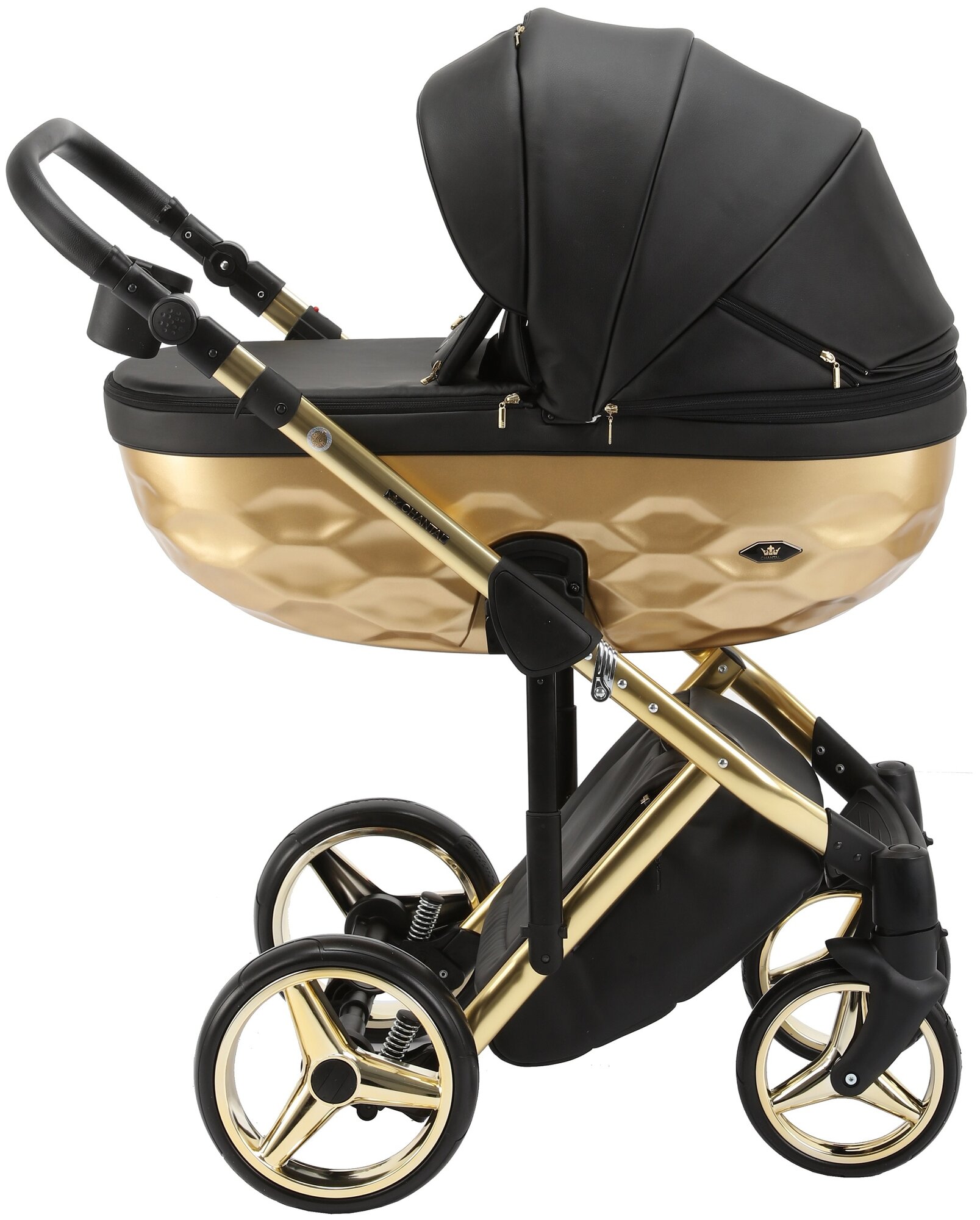 10 цен на Коляска для новорожденных Adamex Chantal Star Deluxe, прогулочная универсальная детская коляска 2 в 1 черная эко-кожа с золотом
