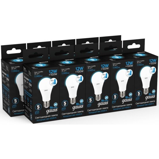 10 цен на Светодиодная лампа Gauss A60 12W 1140lm 6500K Е27 шаг. диммирование LED 1/10/50
