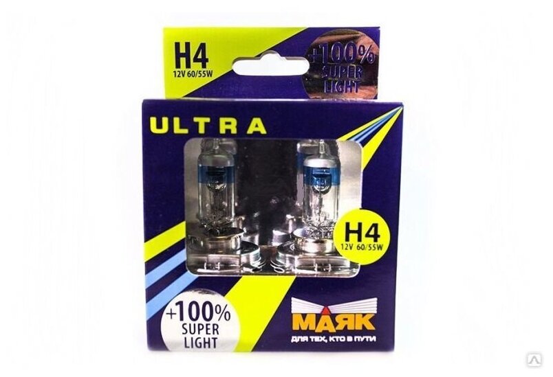 Лампа 12v H4 60/55w +100% P43t Маяк Ультра Super Light 1 Шт. Картон 82420sl+100new Маяк арт. 82420SL+100