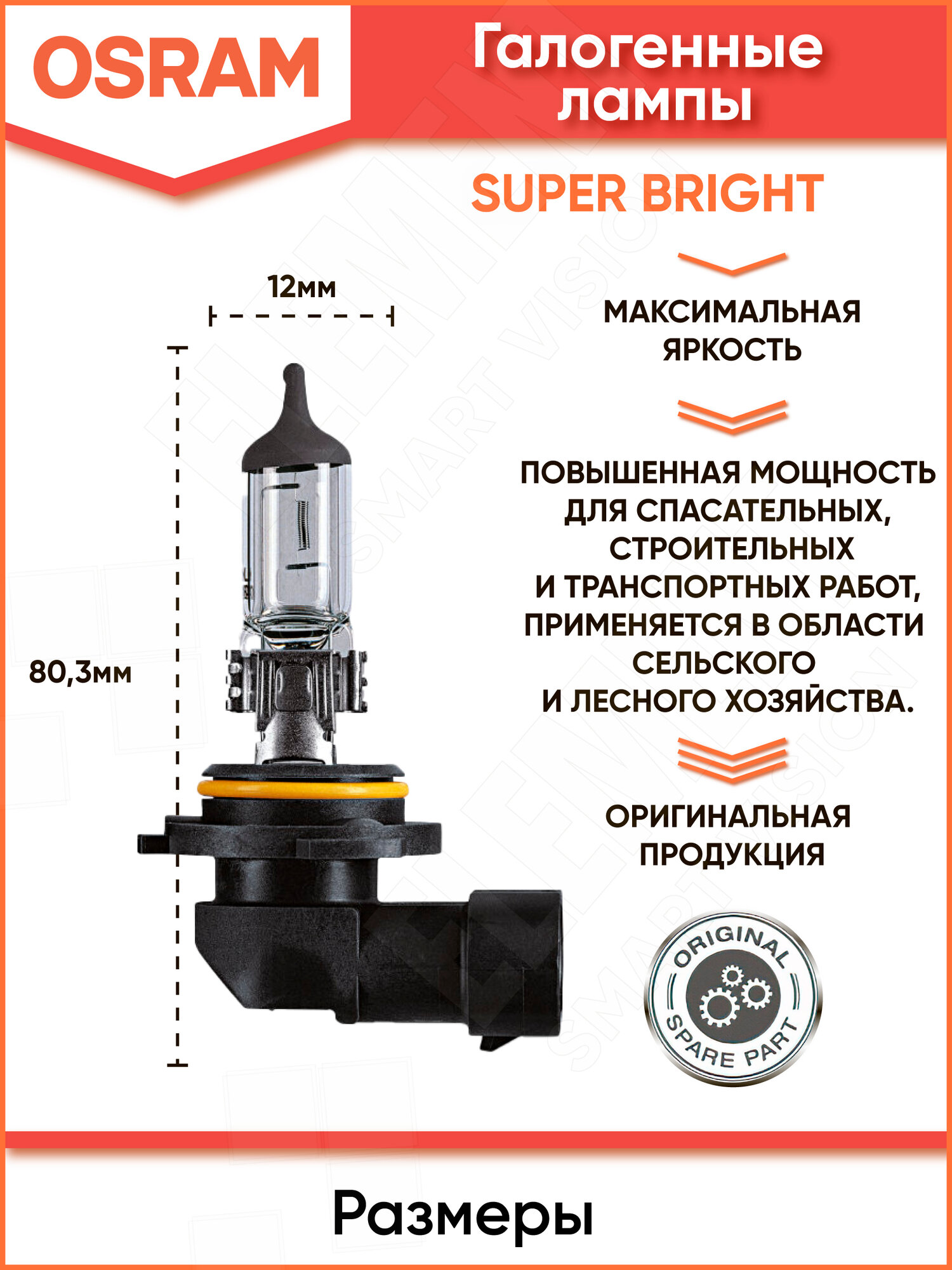 Лампа автомобильная галогенная OSRAM Super Bright Premium 69006SBP HB4 12V 80W P22d 1 шт. информация: