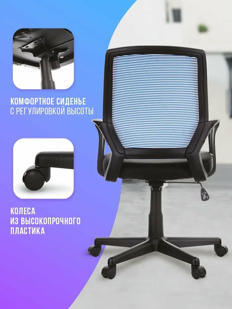 Компьютерное кресло Helmi HL-M02 "Step"/Мягкое сиденье из черной ткани и сетки, с подлокотниками, на колесиках, с регулируемой спинкой/Офисный компьютерный стул, мебель для дома