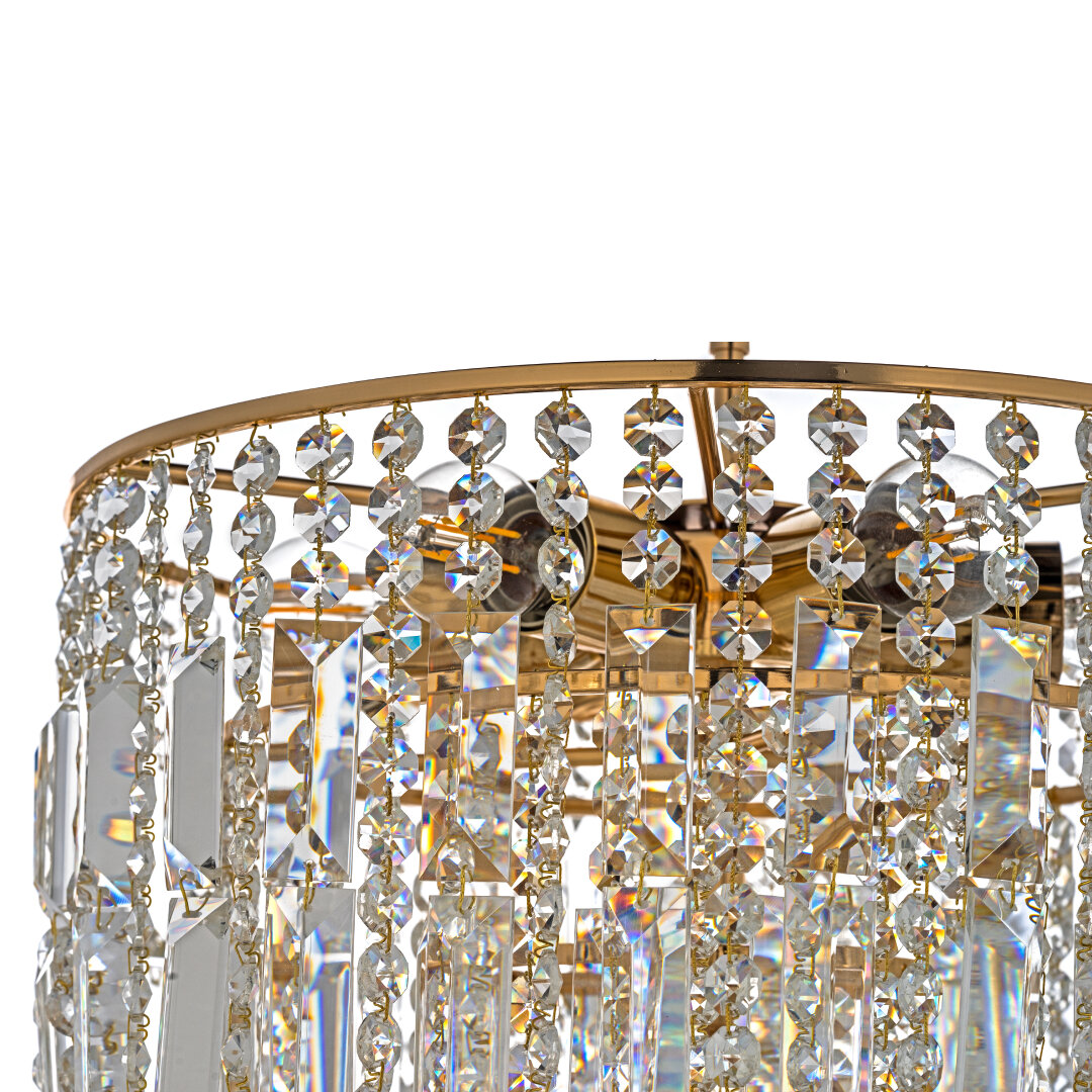 Люстра хрустальная золотая подвесная круглая с прозрачными хрустальными подвесками на 8 ламп E27, регулировка по высоте
