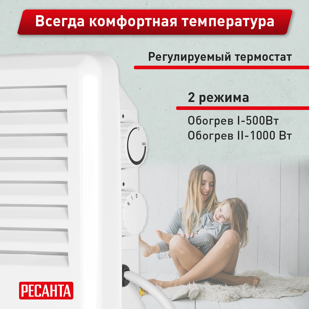 Конвектор РЕСАНТА ОК-1500, 1.5 кВт, 20 м², колеса в комплекте, белый