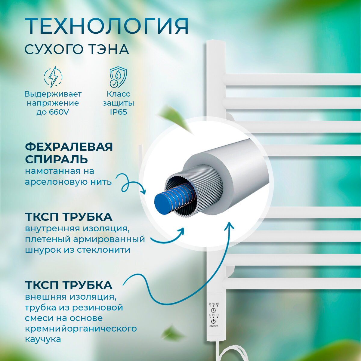 10 цен на Полотенцесушитель электрический Laris Оливия ЧК8 800мм 500мм правое подключение RAL 9016 (белый матовый муар) с таймером и терморегулятором
