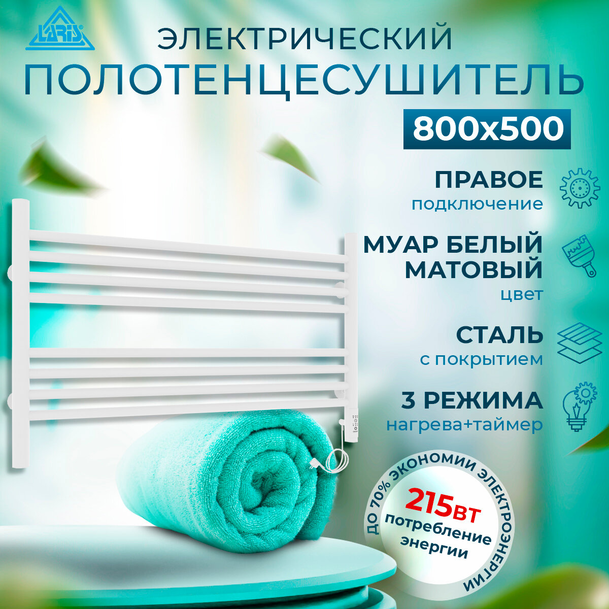 Полотенцесушитель электрический LARIS оливия 800мм 500мм белый матовый муар правое подключение широкий