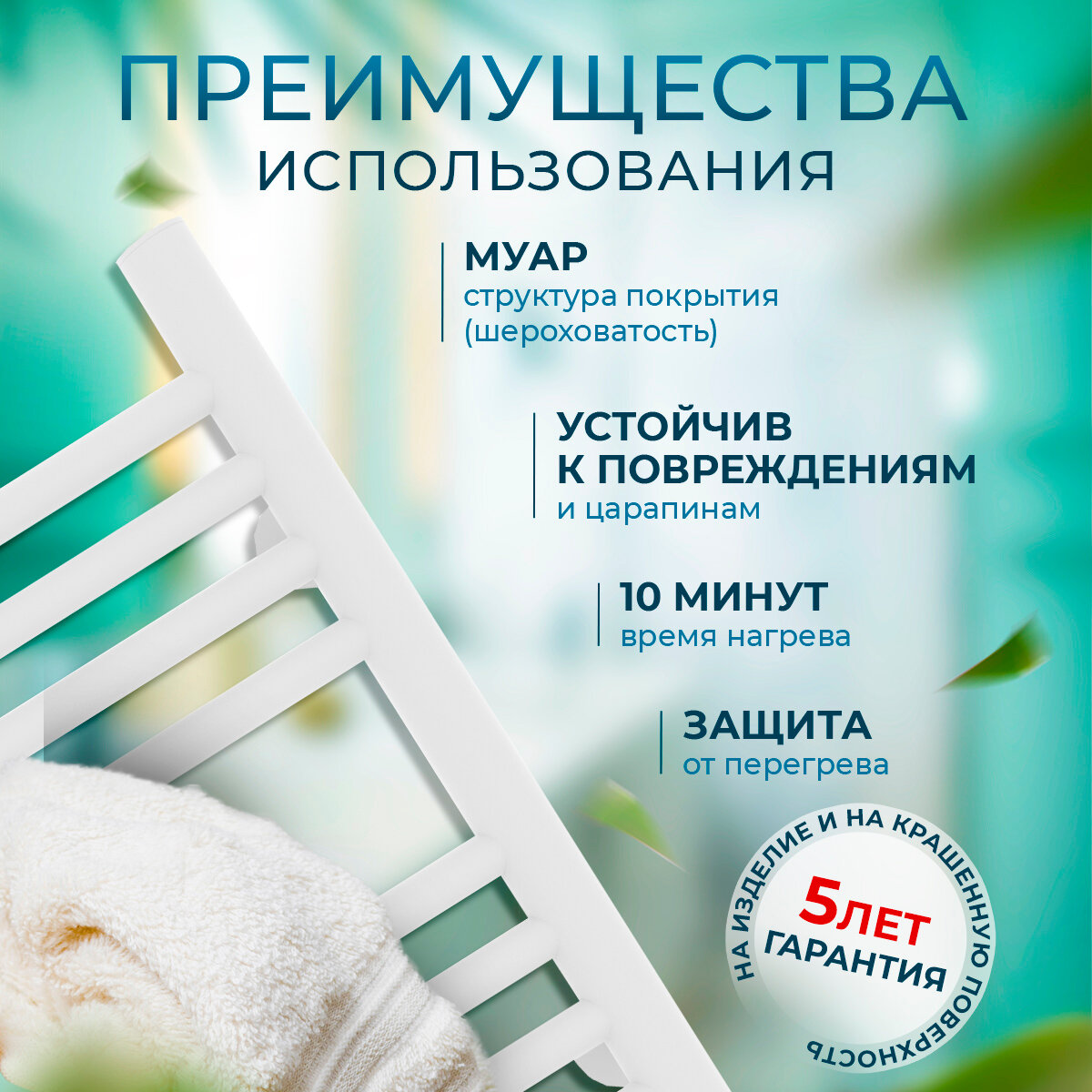 Полотенцесушитель электрический Laris Оливия ЧК8 800мм 500мм правое подключение RAL 9016 (белый матовый муар) с таймером и терморегулятором информация: