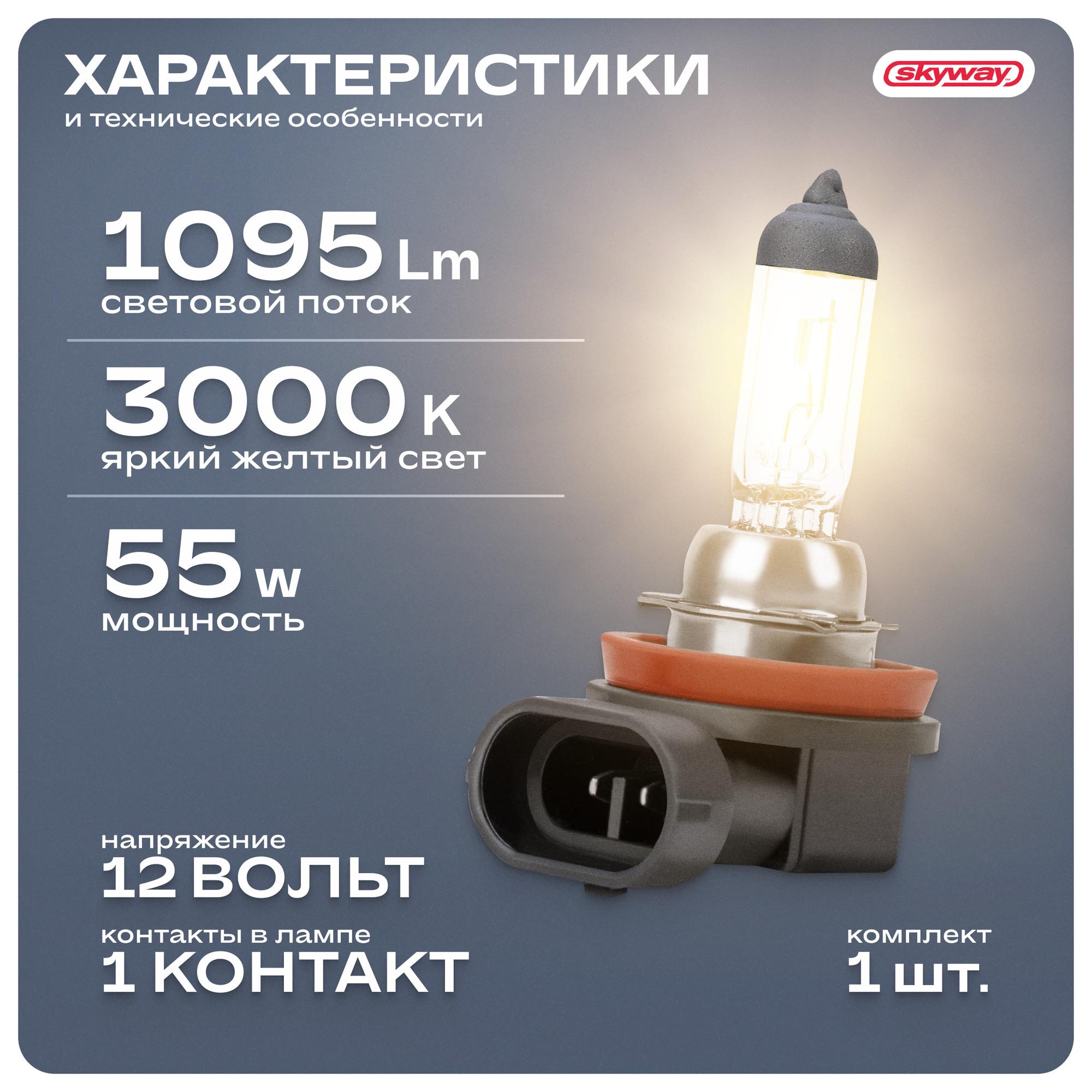 SKYWAY S09101056 Лампа HB4/9006 12V 55W P22d 1-конт 1095Лм 3000К спутник 1 шт; SKYWAY