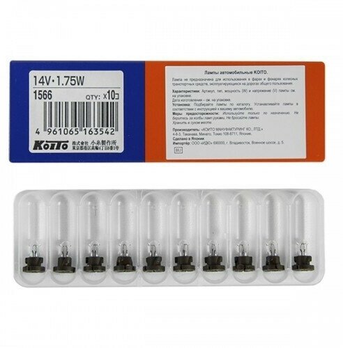 10 цен на KOITO 1566 Лампа накаливания 14V 125mA T5.1 - пластик. цоколь (прозрач.)