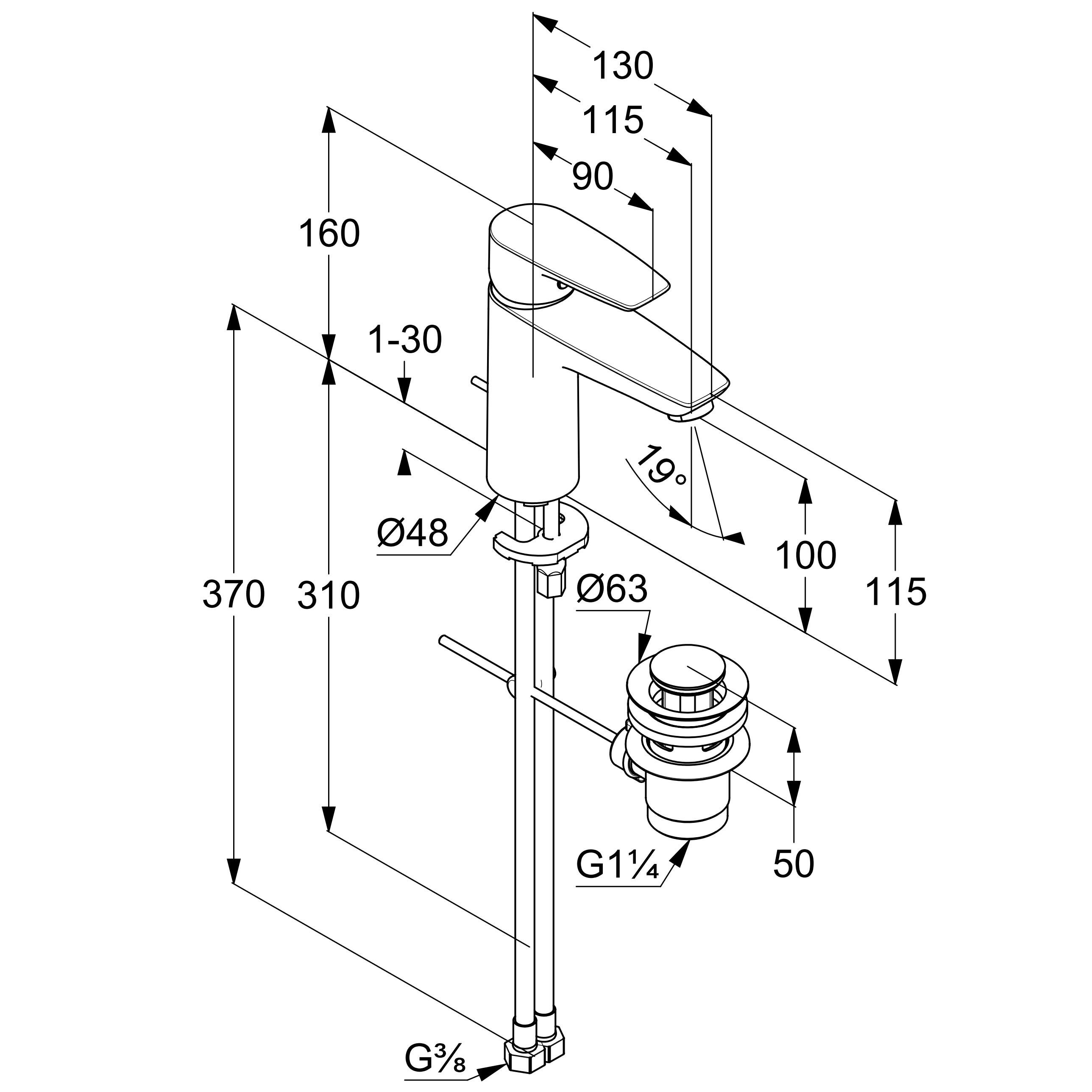 Смеситель Kludi Pure&Solid 342900575 для раковины с донным клапаном
